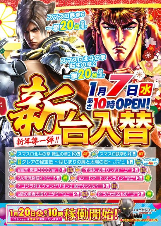 | 入場ルール | 抽選入場日・・・新台入替当日 新台入替翌日 毎月3日間(店舗指定期間) 上記期間外・・・並び順 |