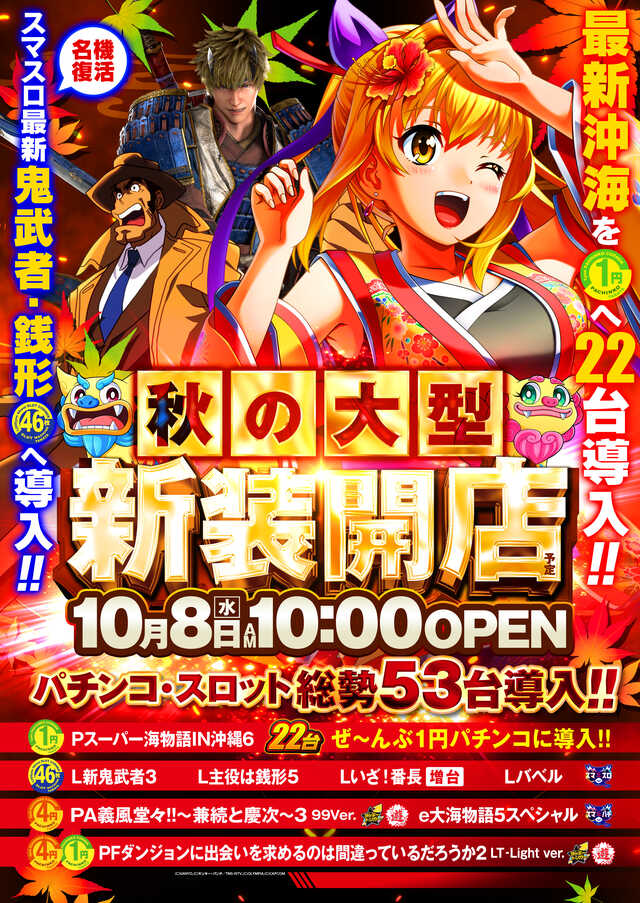 稼働台数 | パチンコ396台 / パチスロ269台 |