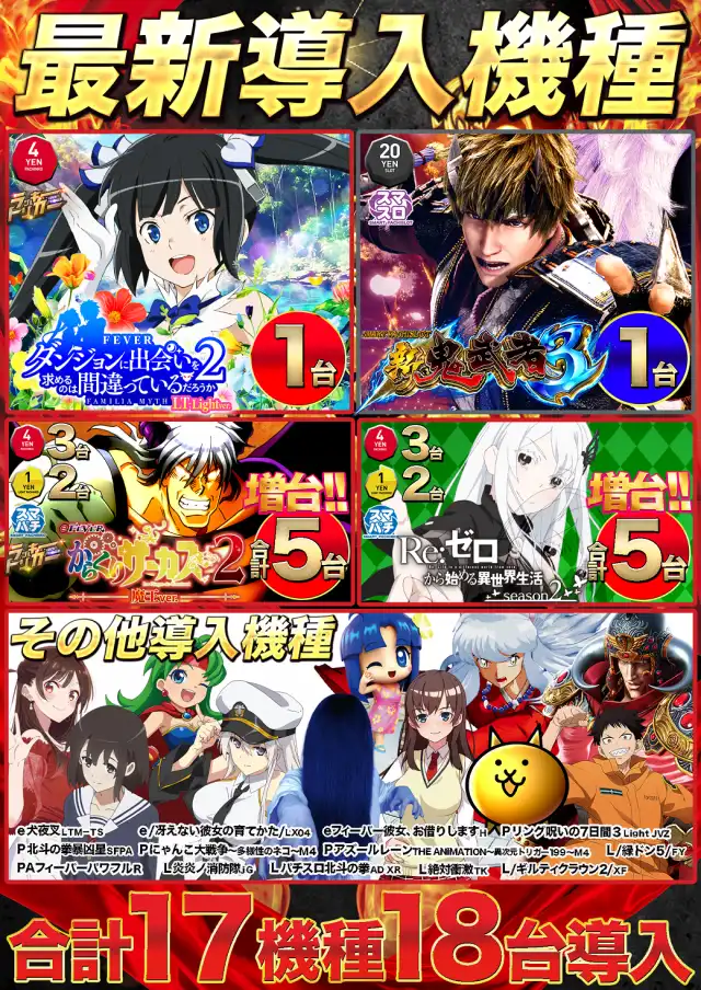 稼働台数 | パチンコ320台 / パチスロ160台 |