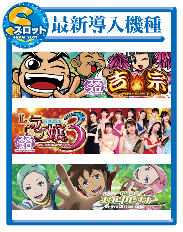 | 稼働台数 | パチンコ264台 / パチスロ90台 |