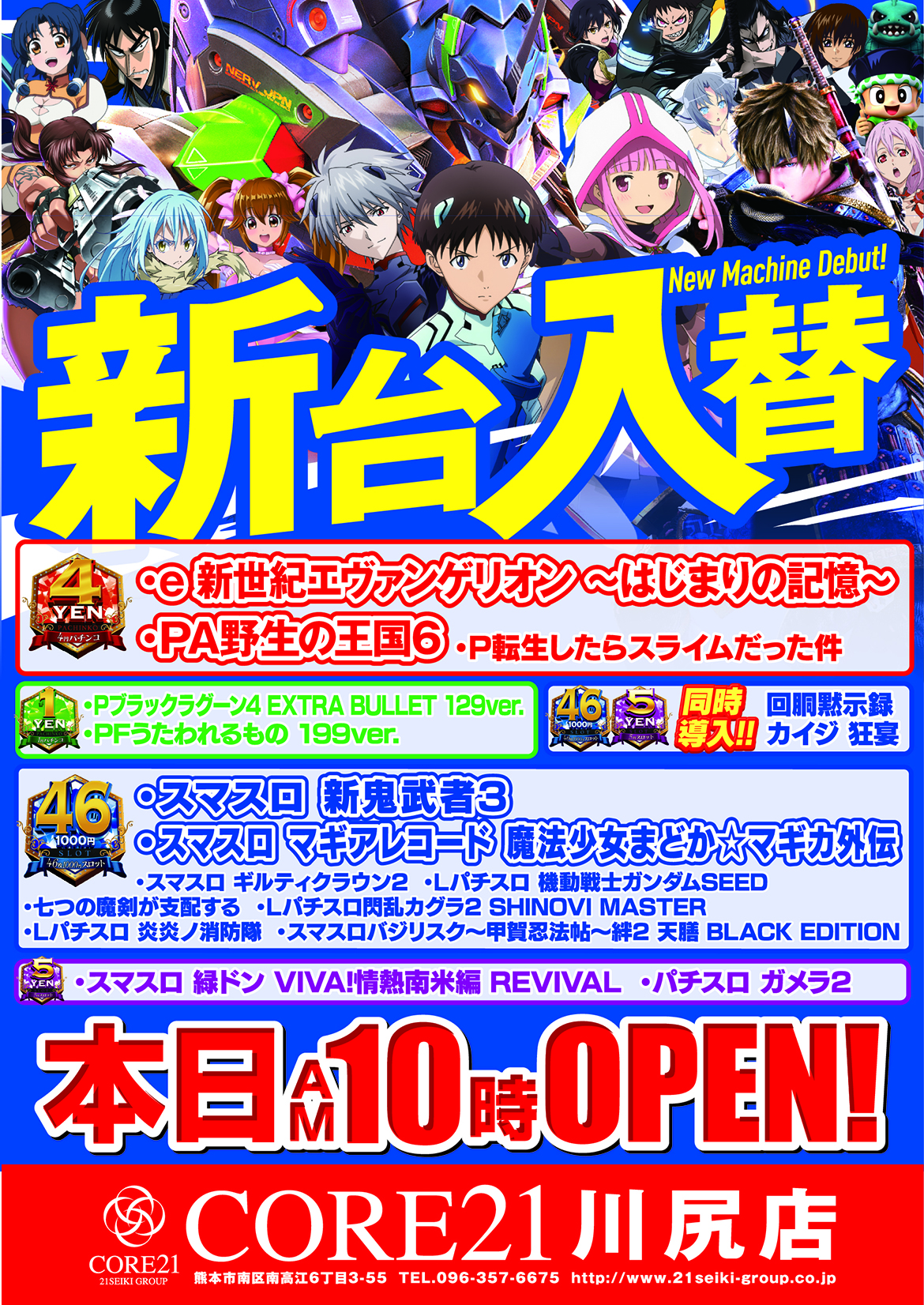 | 営業時間 | 10:00 ~ 22:50(定休日:不定休 ※新台入替OPEN前日が店休となります。) |