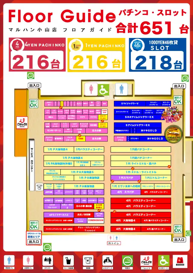 | 稼働台数 | パチンコ427台 / パチスロ216台 |
