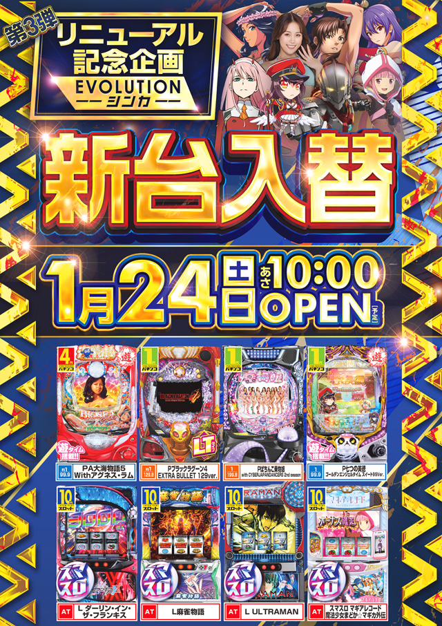 | 稼働台数 | パチンコ312台 / パチスロ134台 |