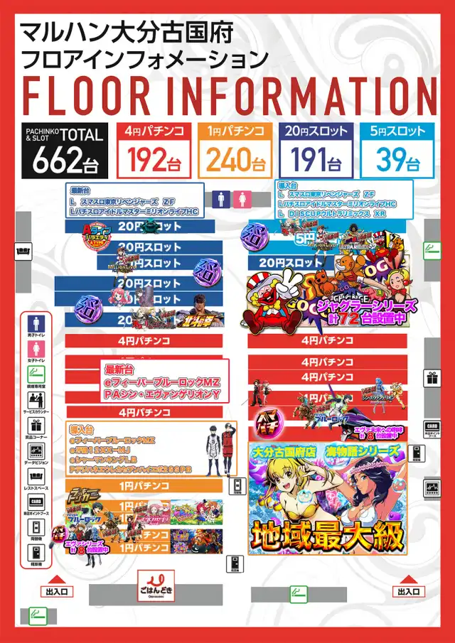 稼働台数 | パチンコ432台 / パチスロ230台 |