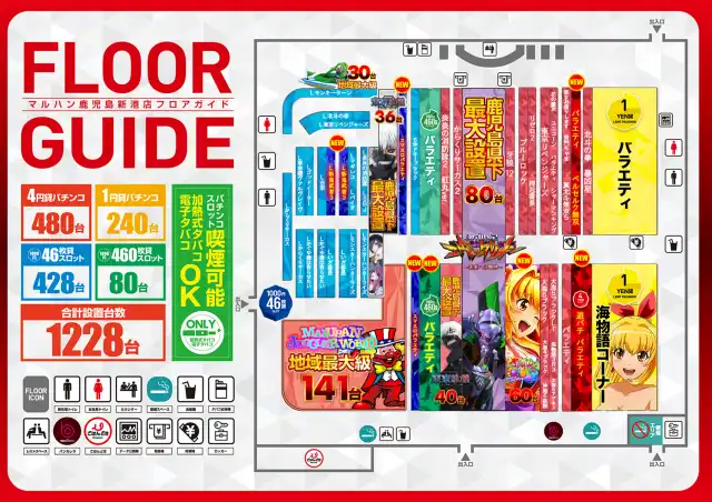 | 稼働台数 | パチンコ720台 / パチスロ508台 |