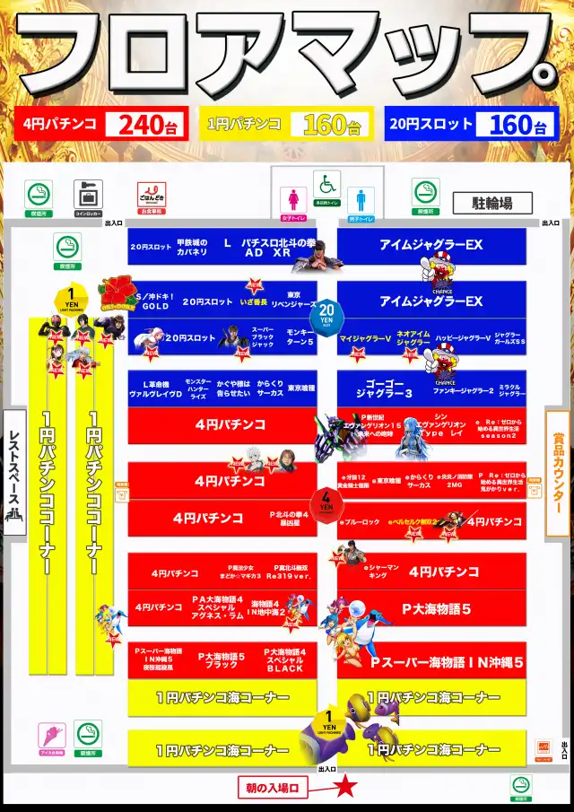 | 稼働台数 | パチンコ400台 / パチスロ160台 |
