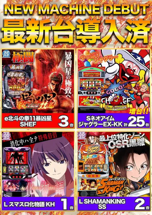 | 稼働台数 | パチンコ395台 / パチスロ158台 |