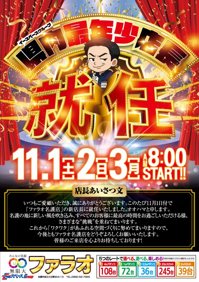 | 営業時間 | 09:00 ~ 23:40(定休日:年中無休) 土日祝8:00~23:40※パチンコ~23:30 ※貯玉会員様最大10分延長サービス |