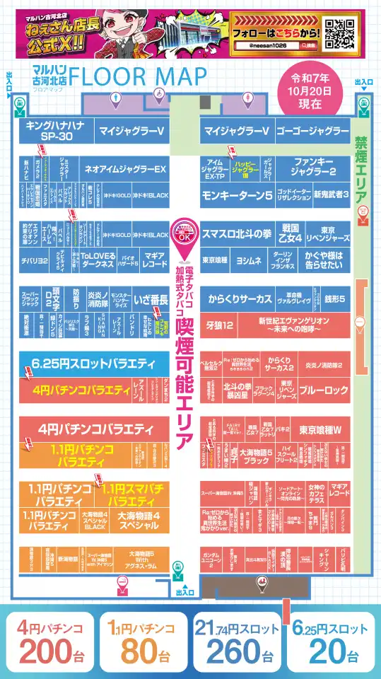 稼働台数 | パチンコ280台 / パチスロ280台 |