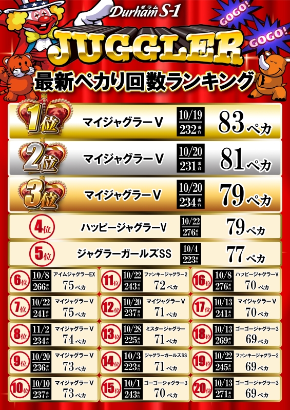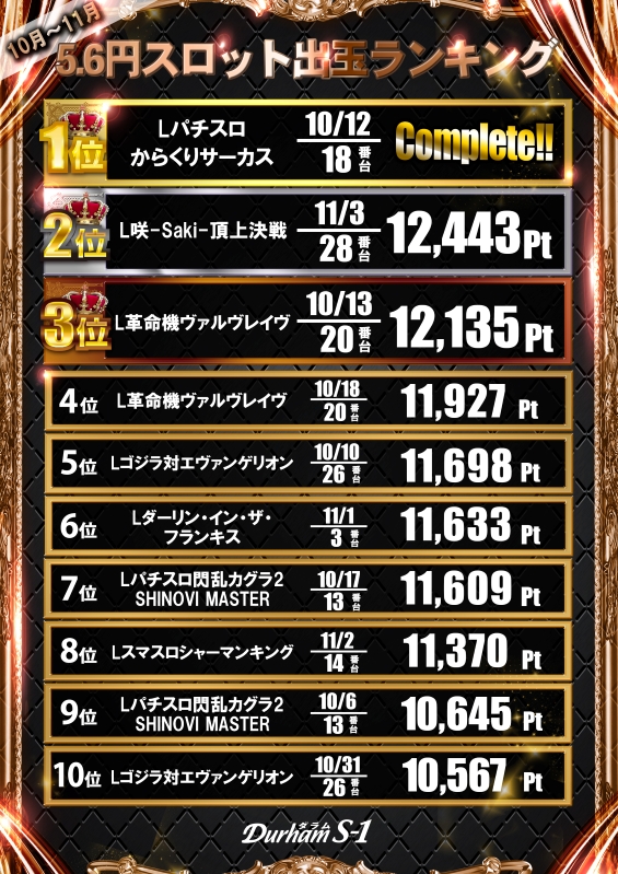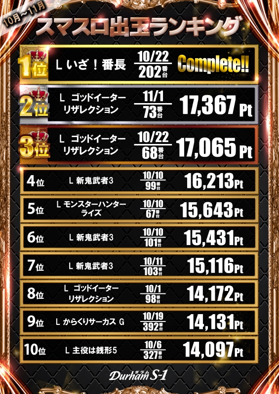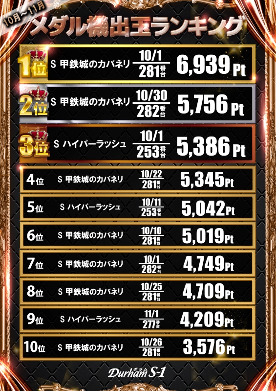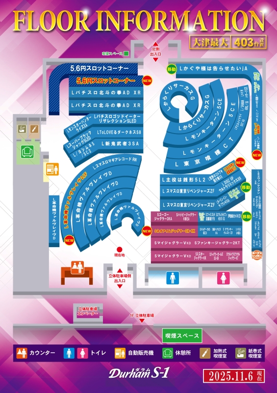 | 営業時間 | 10:00 ~ 22:50 一般遊技打ち止め 22:40 会員遊技打ち止め 22:50 |