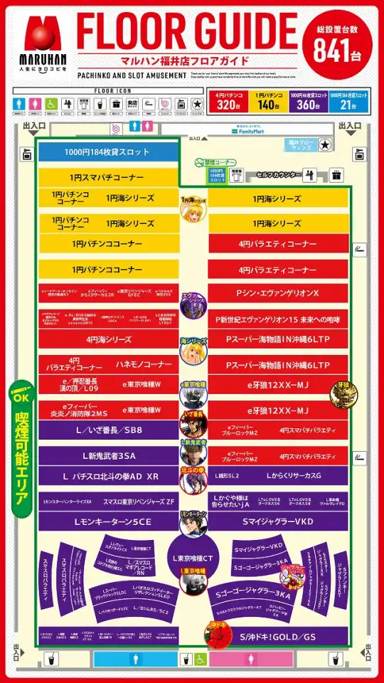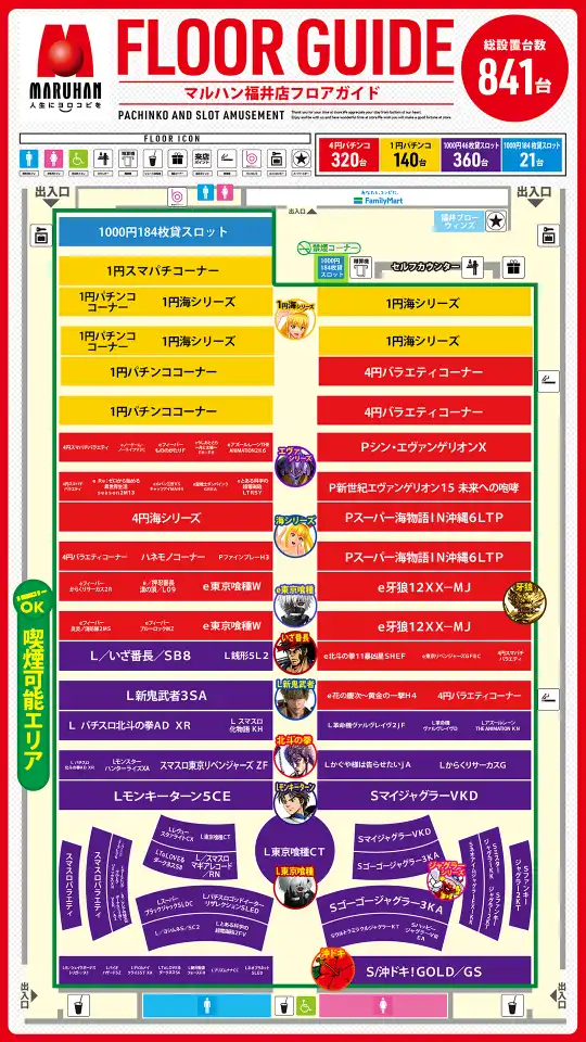 | 稼働台数 | パチンコ460台 / パチスロ381台 |