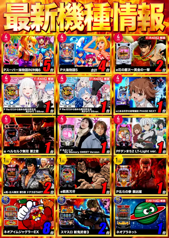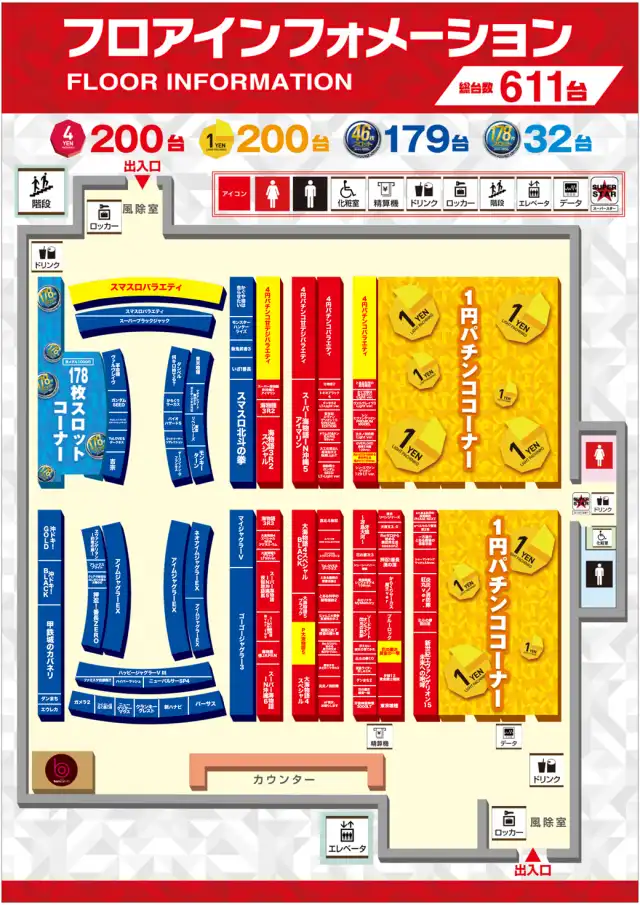| 稼働台数 | パチンコ400台 / パチスロ211台 |