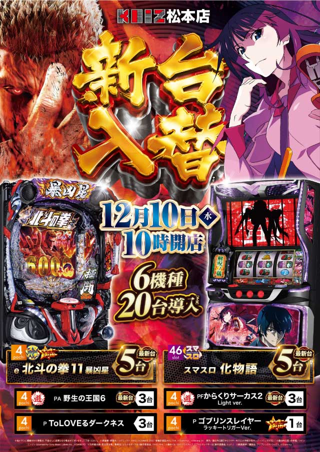 | 営業時間 | 10:00 ~ 22:45 会員カードをお持ちのお客様は 閉店時の遊技時間+5分の延長が可能です。 (貯玉・貯メダルのみ) |