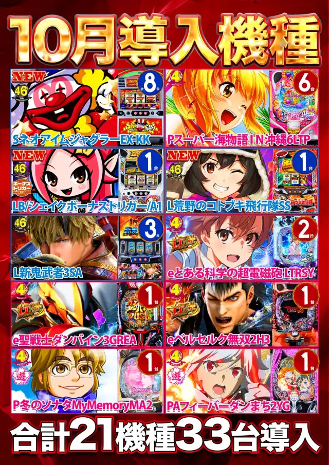 | 稼働台数 | パチンコ399台 / パチスロ280台 |