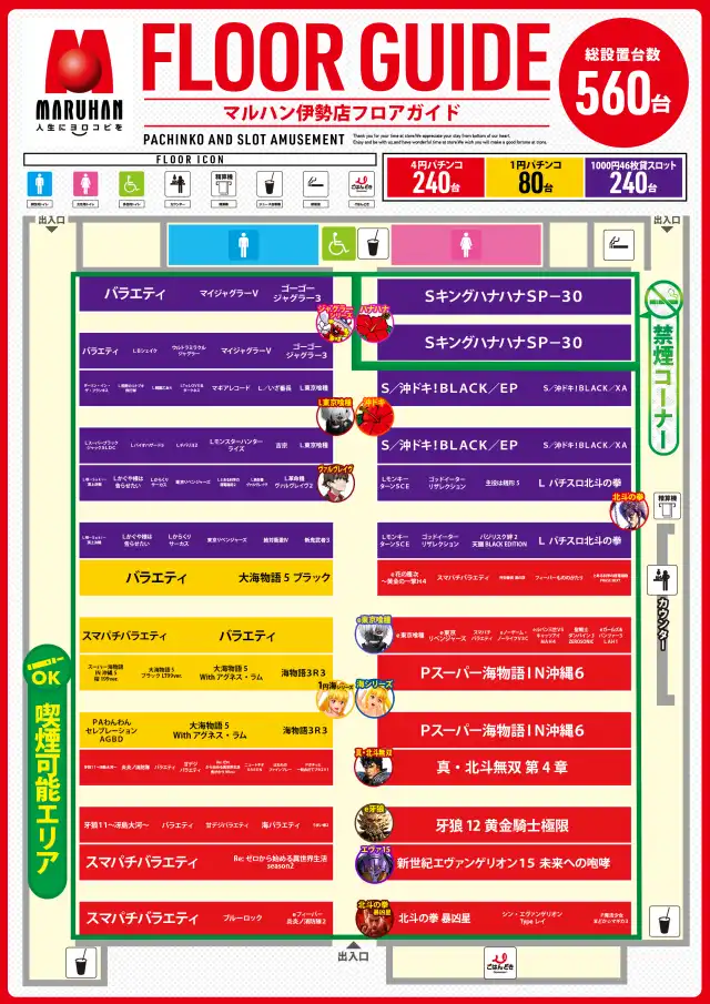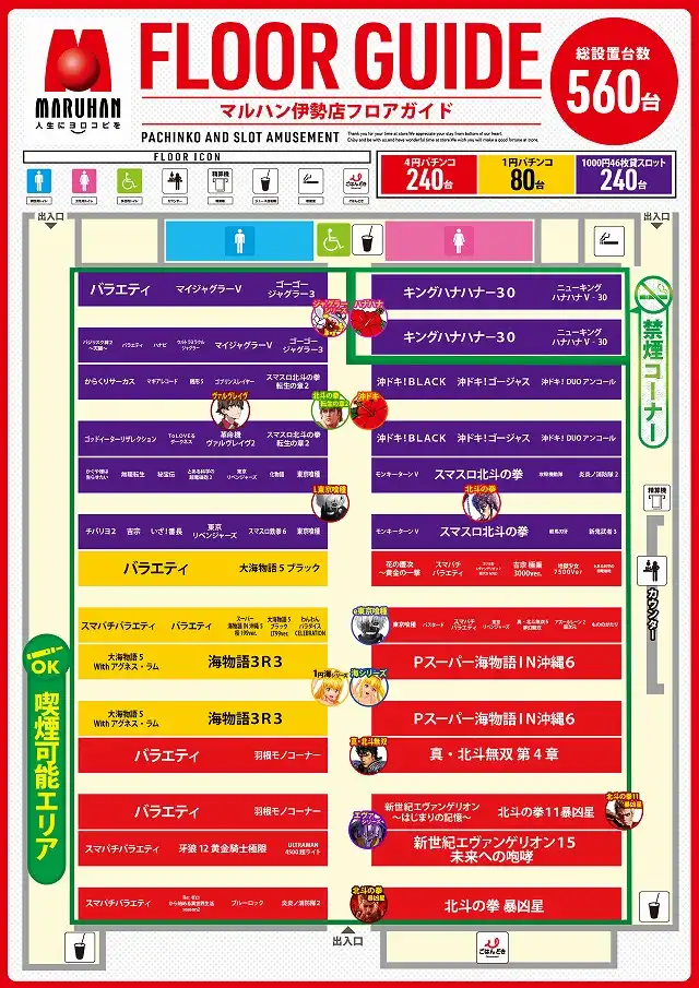 | 稼働台数 | パチンコ320台 / パチスロ240台 |