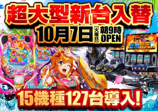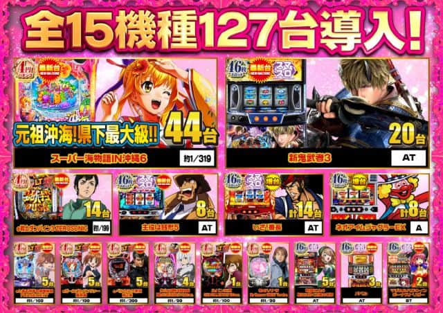 | 稼働台数 | パチンコ568台 / パチスロ562台 |
