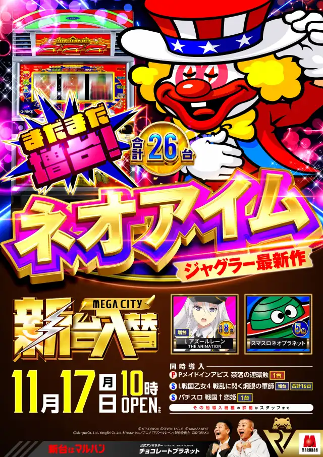 | 稼働台数 | パチンコ292台 / パチスロ715台 |