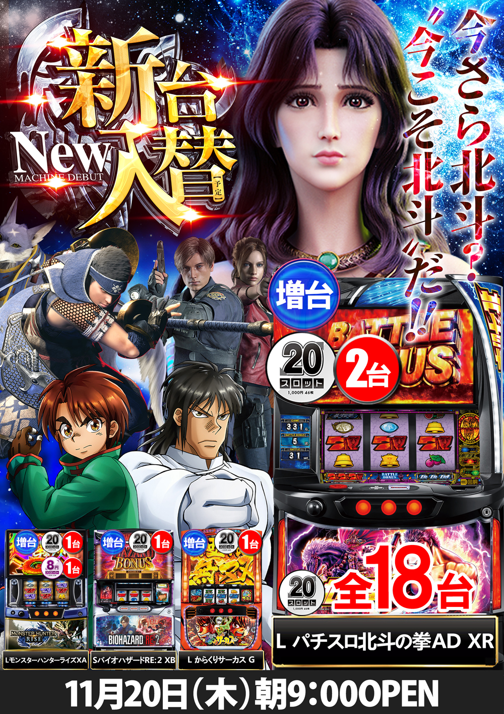 | 稼働台数 | パチンコ192台 / パチスロ128台 |