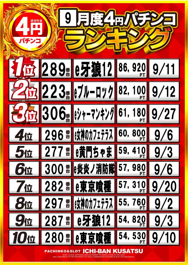 稼働台数 | パチンコ308台 / パチスロ352台 |