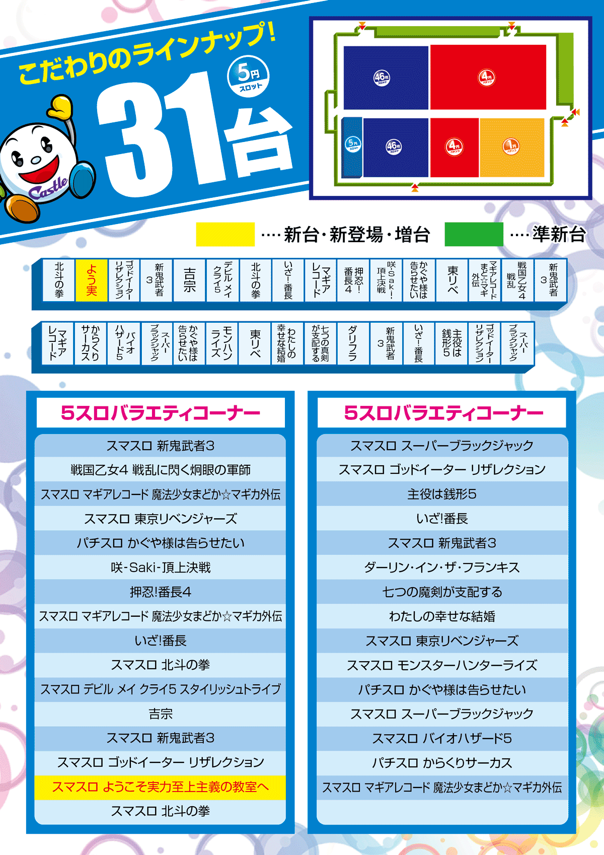 | 稼働台数 | パチンコ544台 / パチスロ522台 |