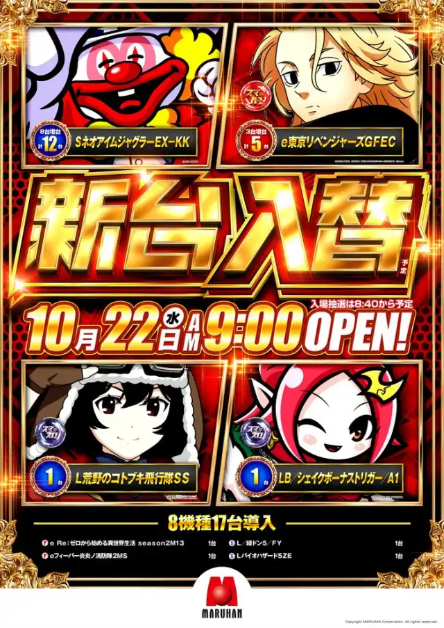 | 稼働台数 | パチンコ284台 / パチスロ271台 |