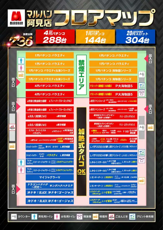 稼働台数 | パチンコ432台 / パチスロ304台 |