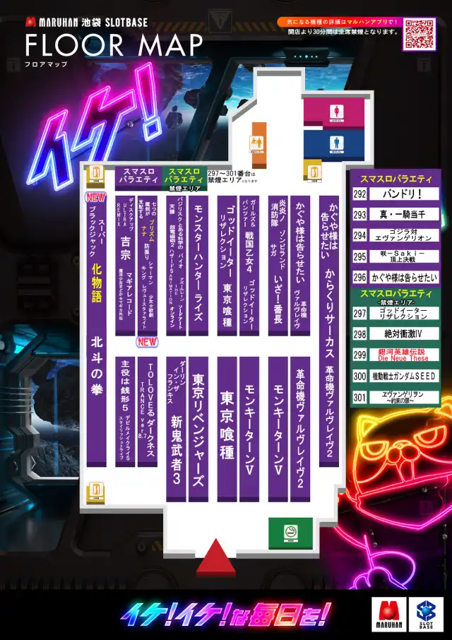 | アクセス | マルハン池袋スロットベースへは、JR池袋駅東口明治通り沿いビックカメラ本店先の信号を左へ マルハン池袋店のお隣ビルです |
