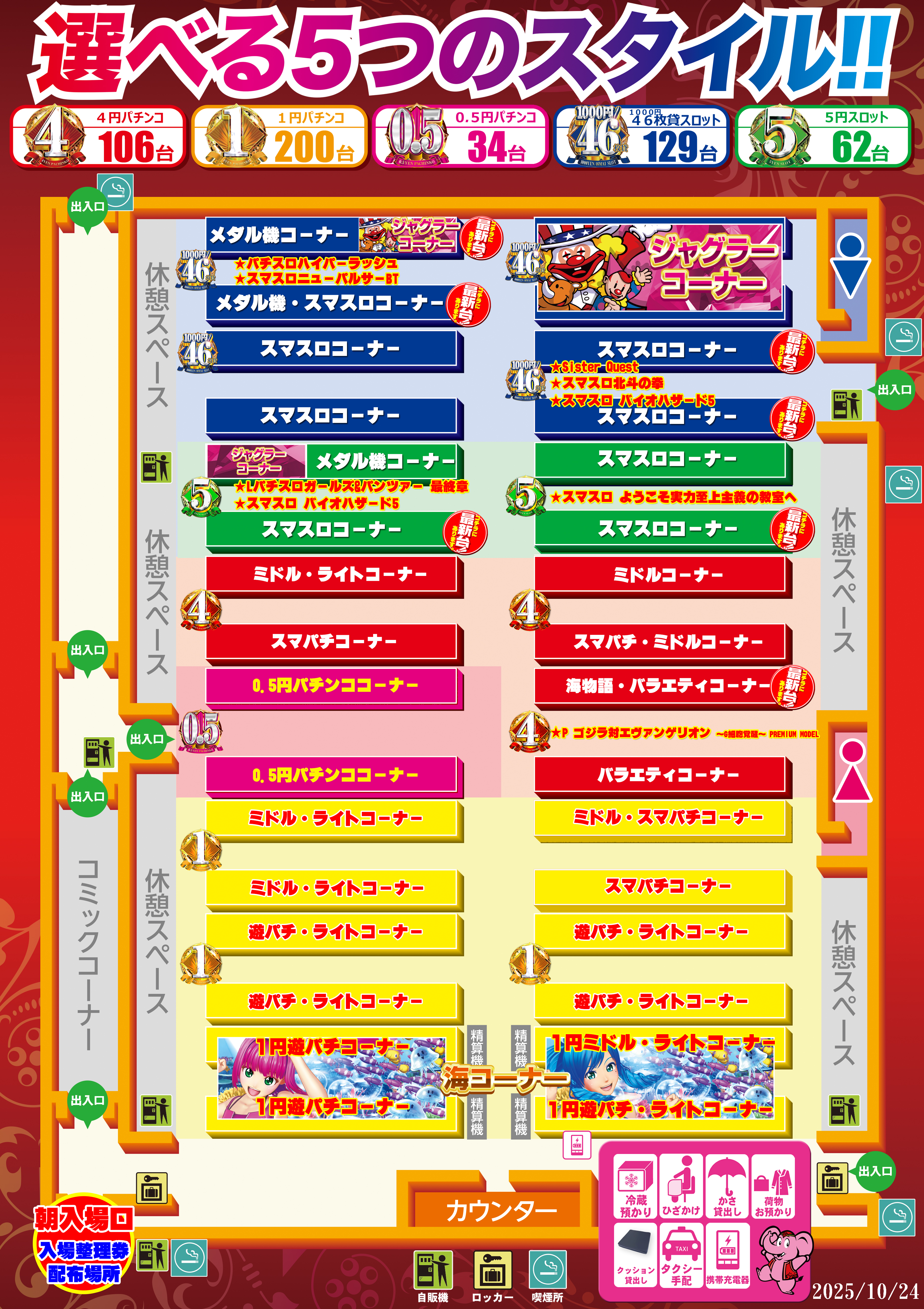 | 稼働台数 | パチンコ334台 / パチスロ157台 |