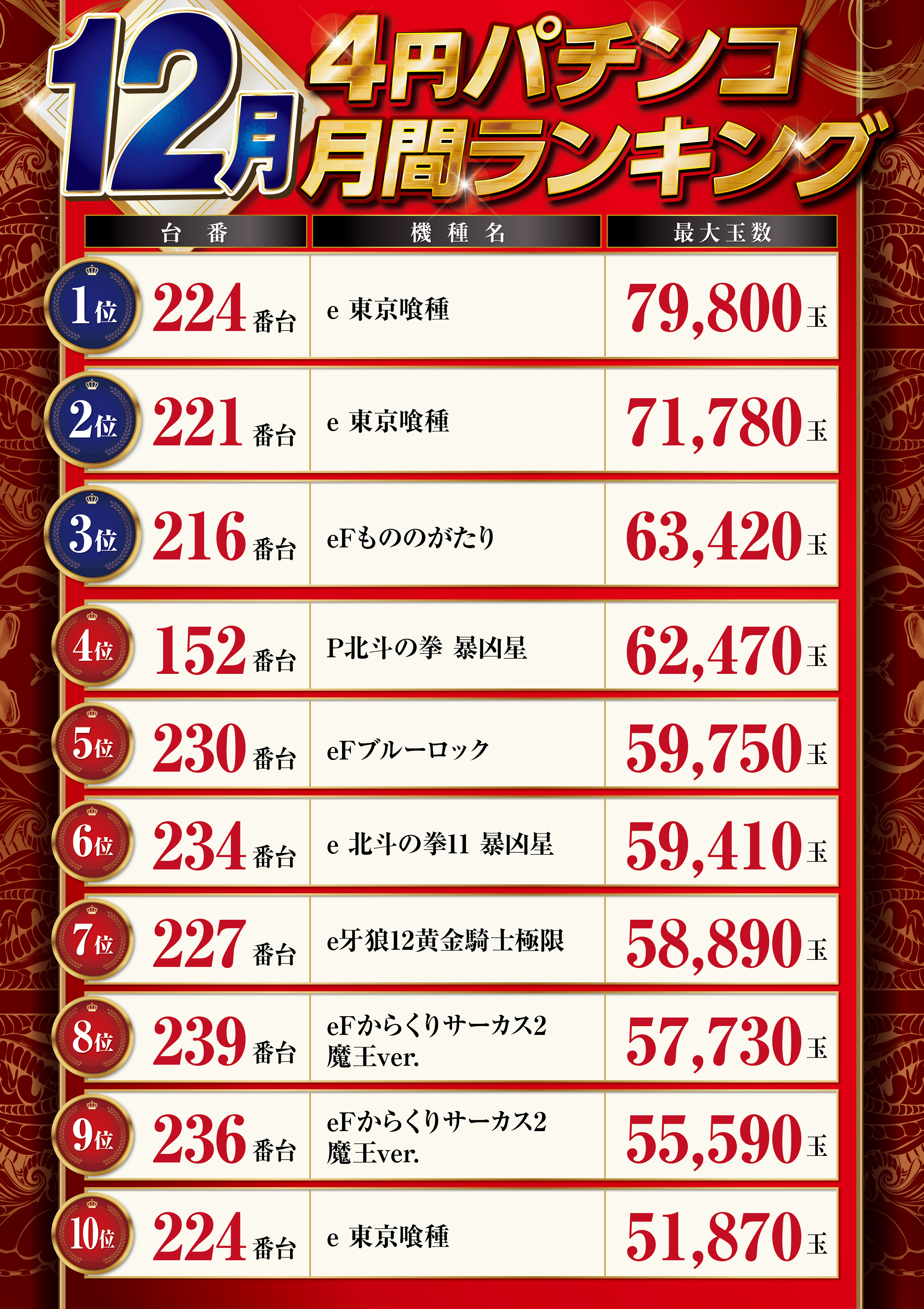 | ホール設備・貸玉料 | |