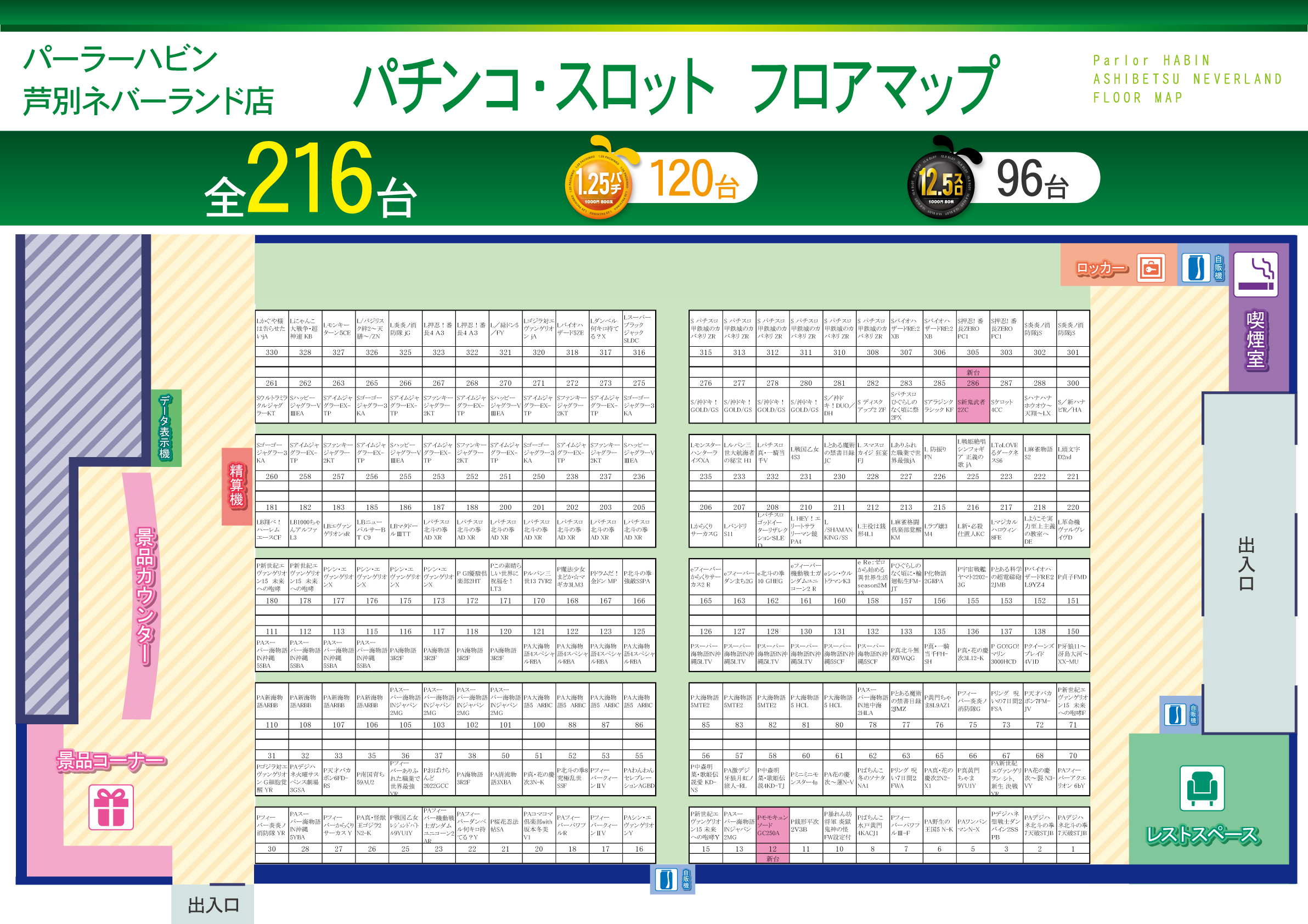 | 稼働台数 | パチンコ120台 / パチスロ96台 |