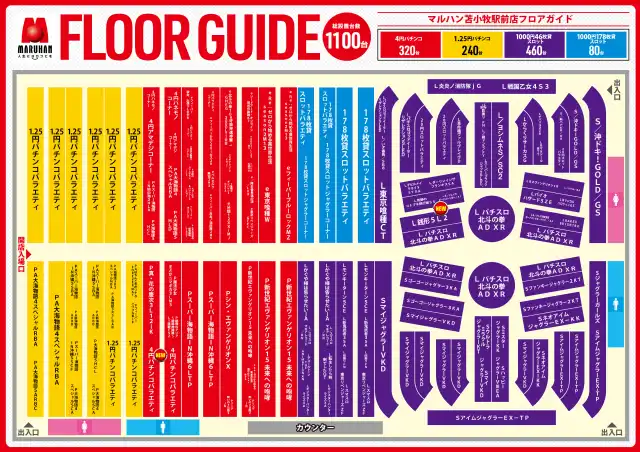 | 稼働台数 | パチンコ560台 / パチスロ540台 |