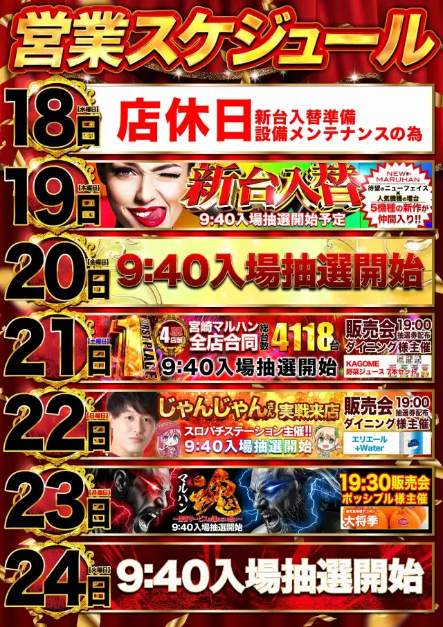 | 稼働台数 | パチンコ672台 / パチスロ756台 |