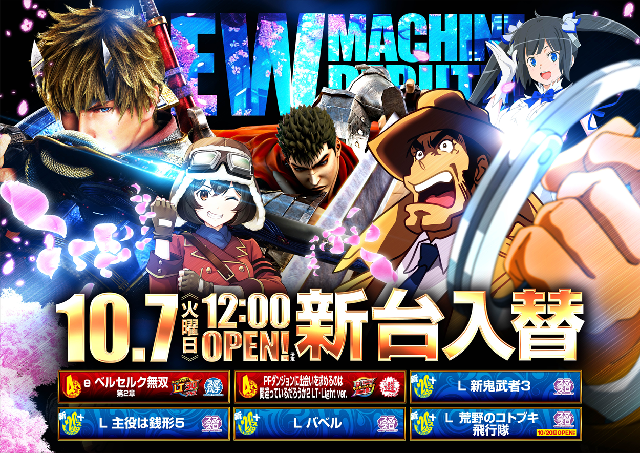 | 営業時間 | 10:00 ~ 22:40(定休日:新台検査日でお休みをいただく場合が御座います。) |