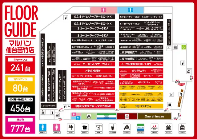 | 稼働台数 | パチンコ321台 / パチスロ456台 |