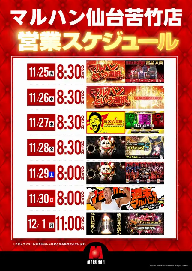 | 営業時間 | 08:30 ~ 23:30(定休日:土日祝 8:00開店) |