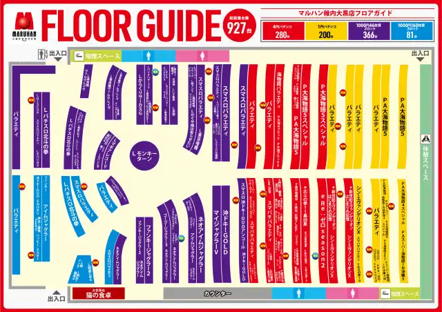 | 稼働台数 | パチンコ480台 / パチスロ447台 |