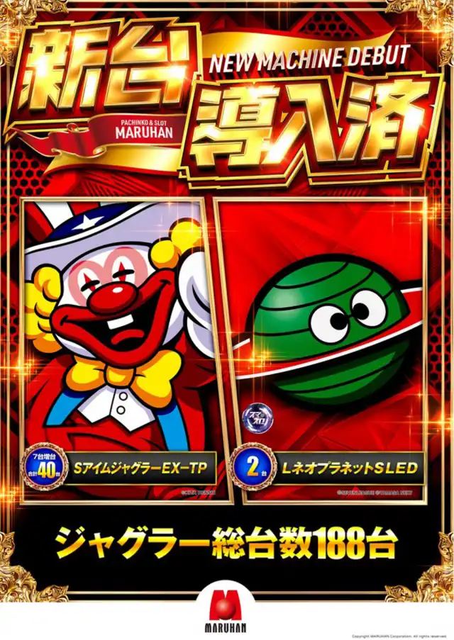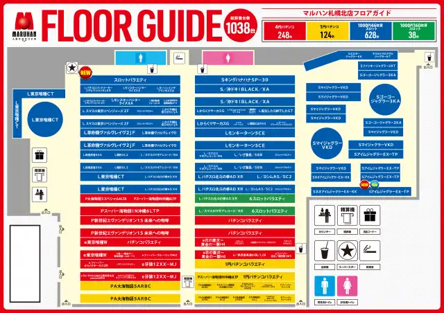 | 稼働台数 | パチンコ372台 / パチスロ665台 |