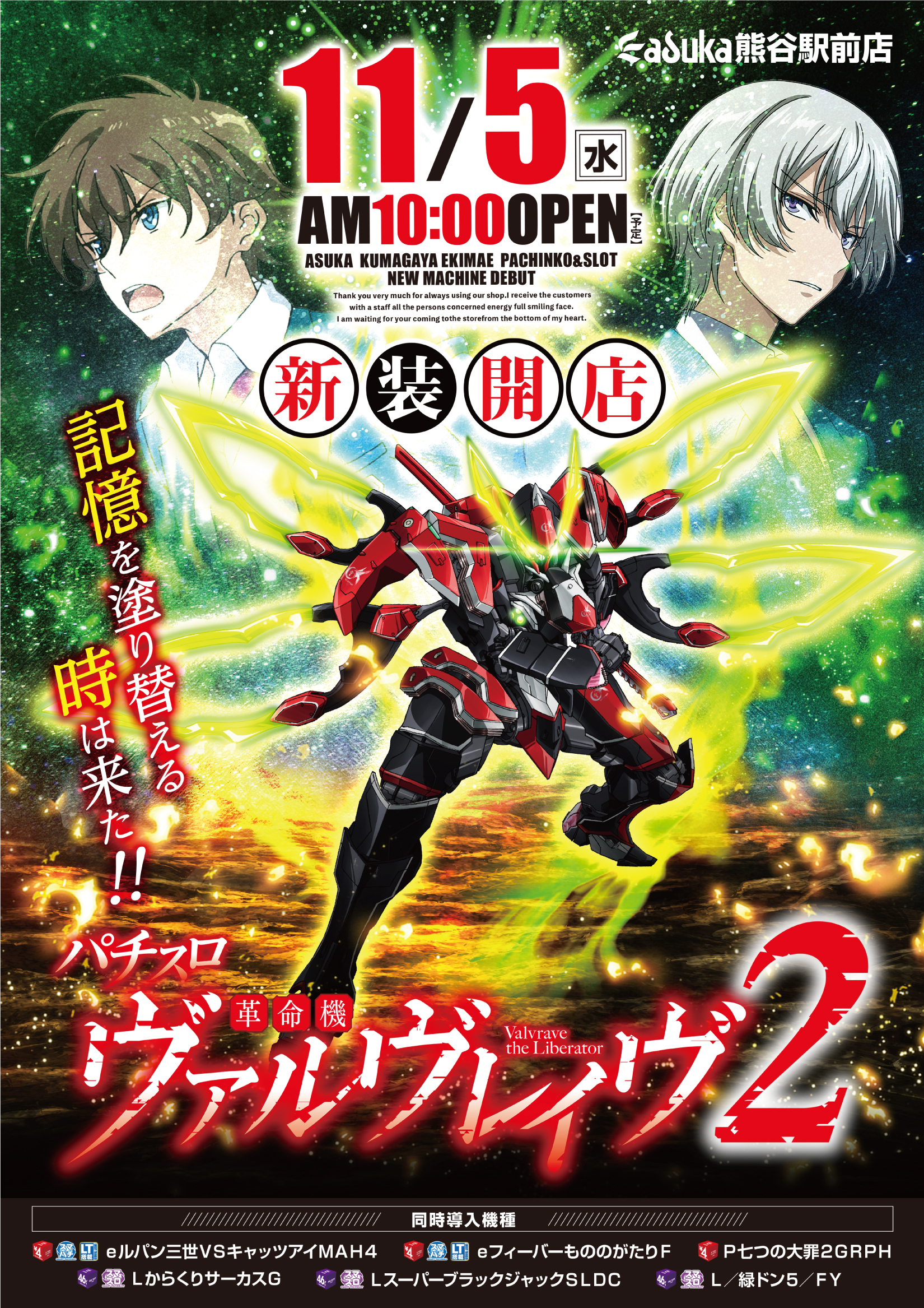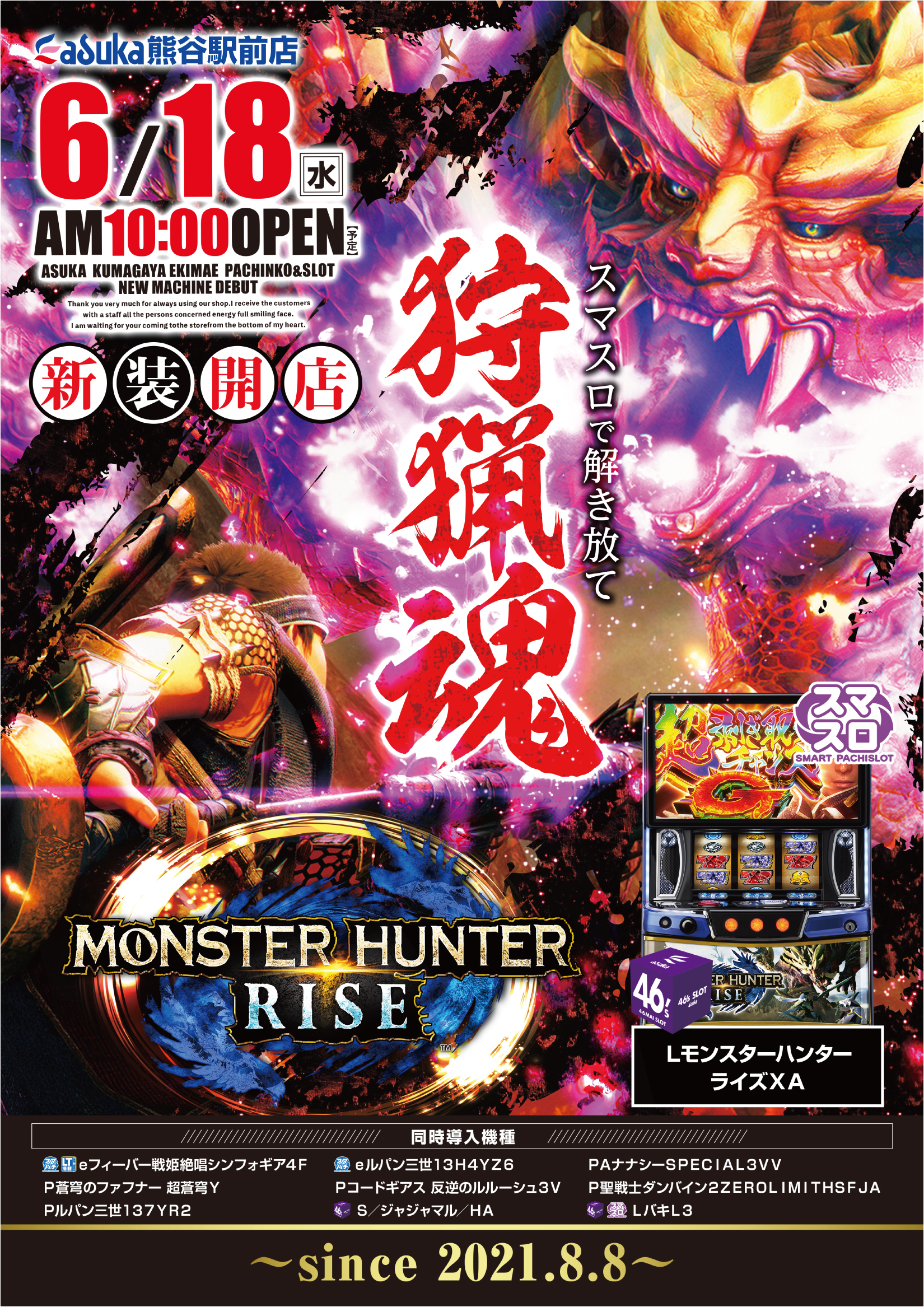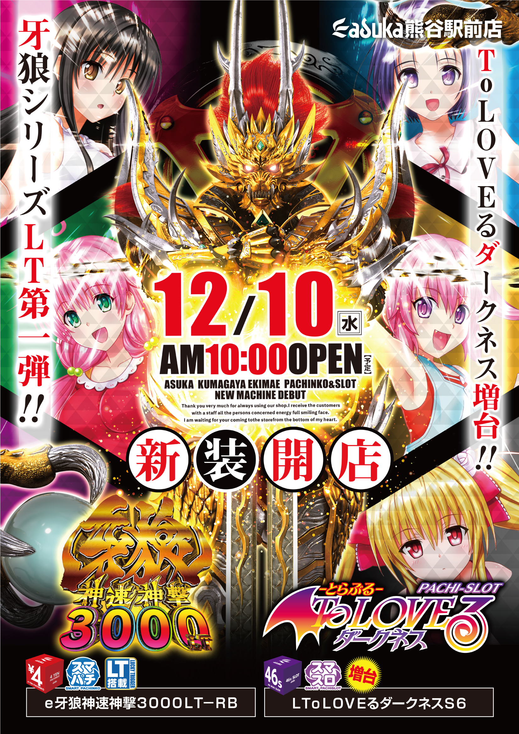 | 営業時間 | 10:00 ~ 22:45 会員のお客様、延長遊技22:50まで |