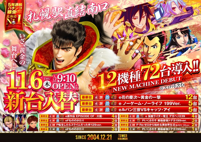 | 稼働台数 | パチンコ640台 / パチスロ466台 |