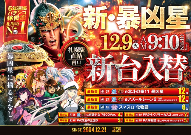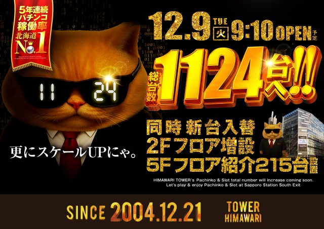 | 稼働台数 | パチンコ640台 / パチスロ475台 |