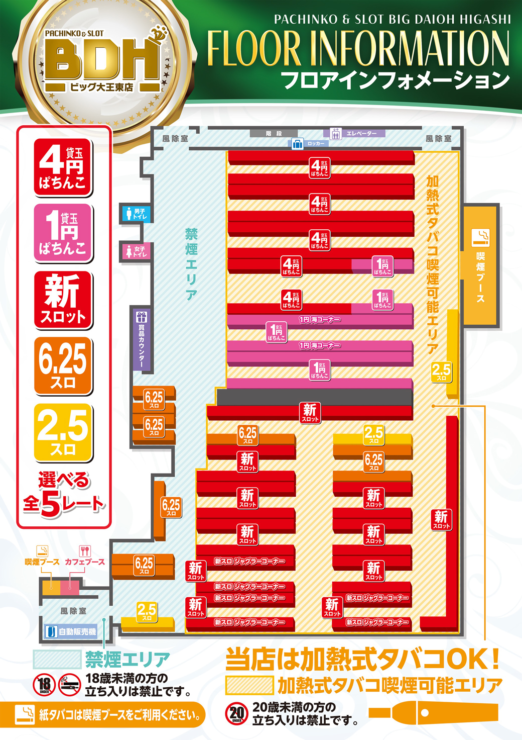 | 稼働台数 | パチンコ228台 / パチスロ235台 |