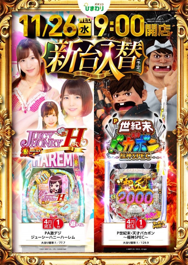 | 稼働台数 | パチンコ262台 / パチスロ148台 |