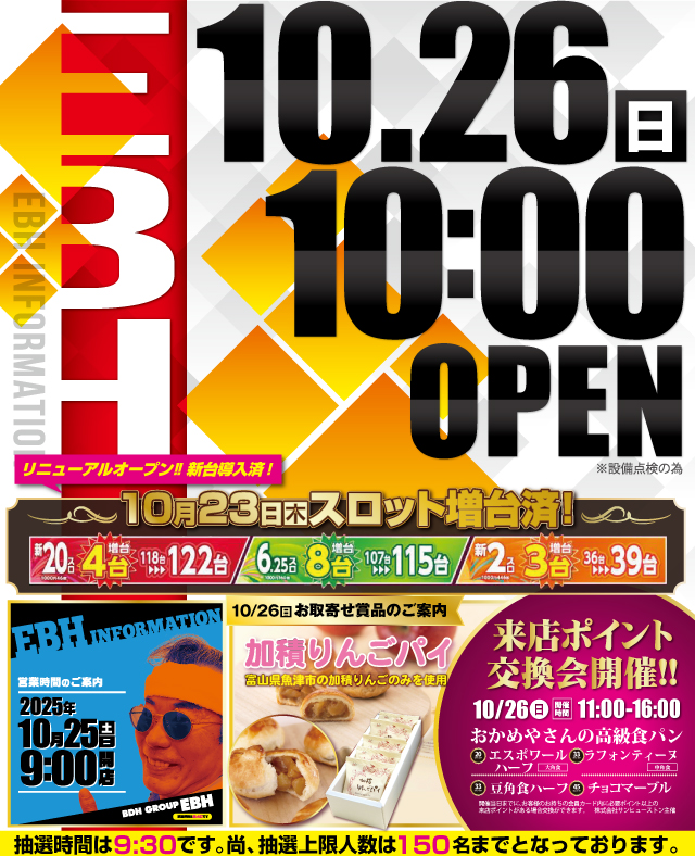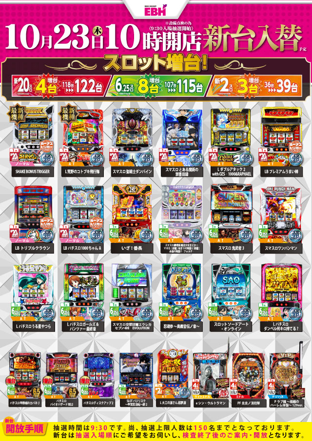 営業時間 | 09:00 ~ 23:00 22:45 遊技終了 |