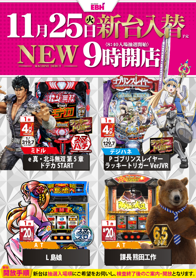 | 営業時間 | 09:00 ~ 23:00 22:45 遊技終了 |
