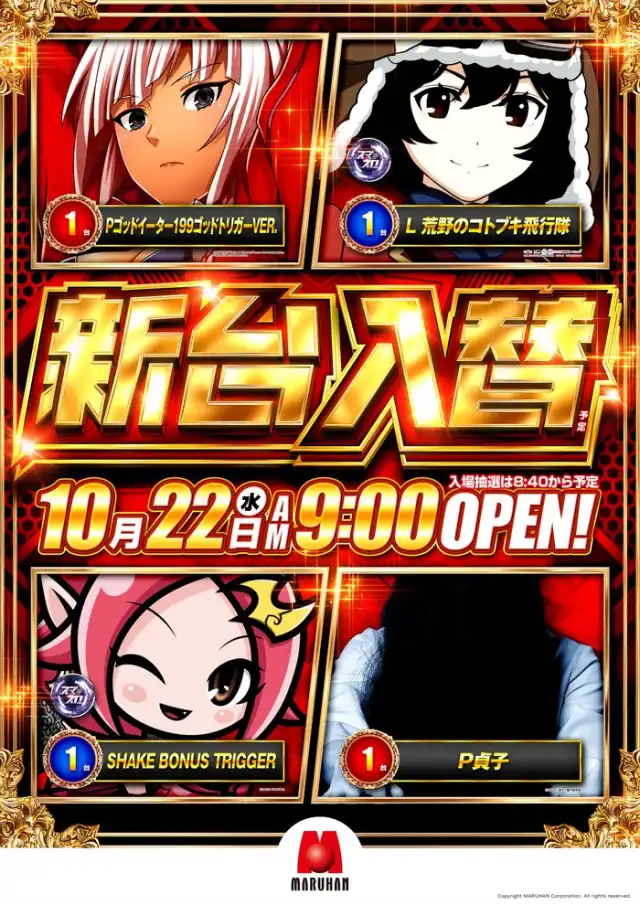 稼働台数 | パチンコ444台 / パチスロ262台 |