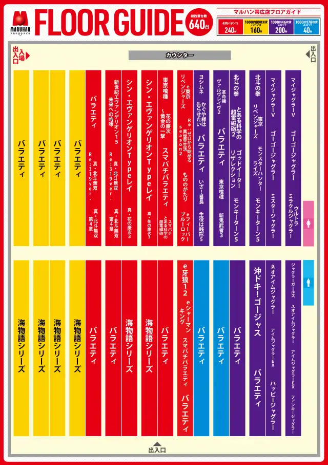 | 稼働台数 | パチンコ400台 / パチスロ240台 |