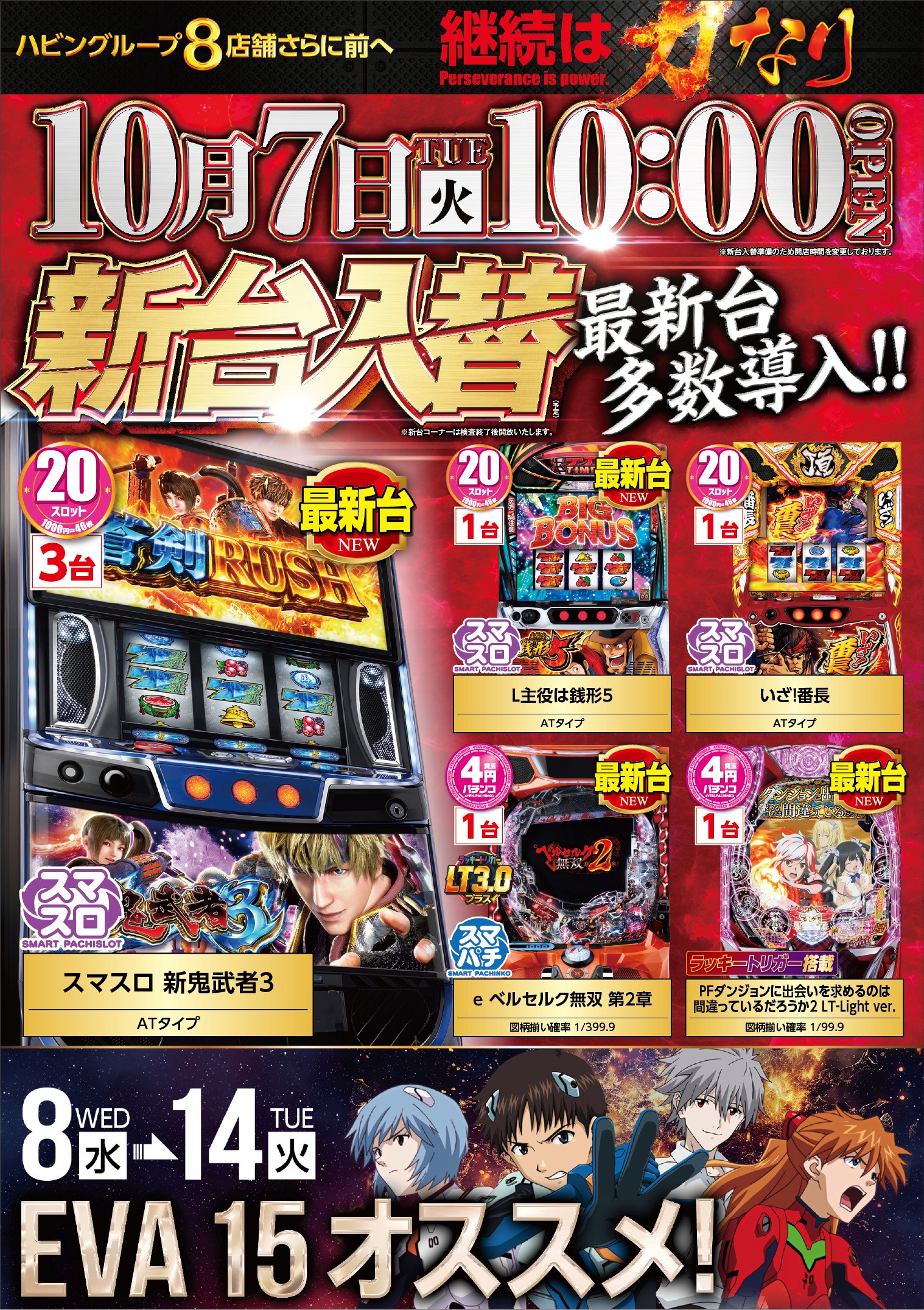 稼働台数 | パチンコ251台 / パチスロ174台 |