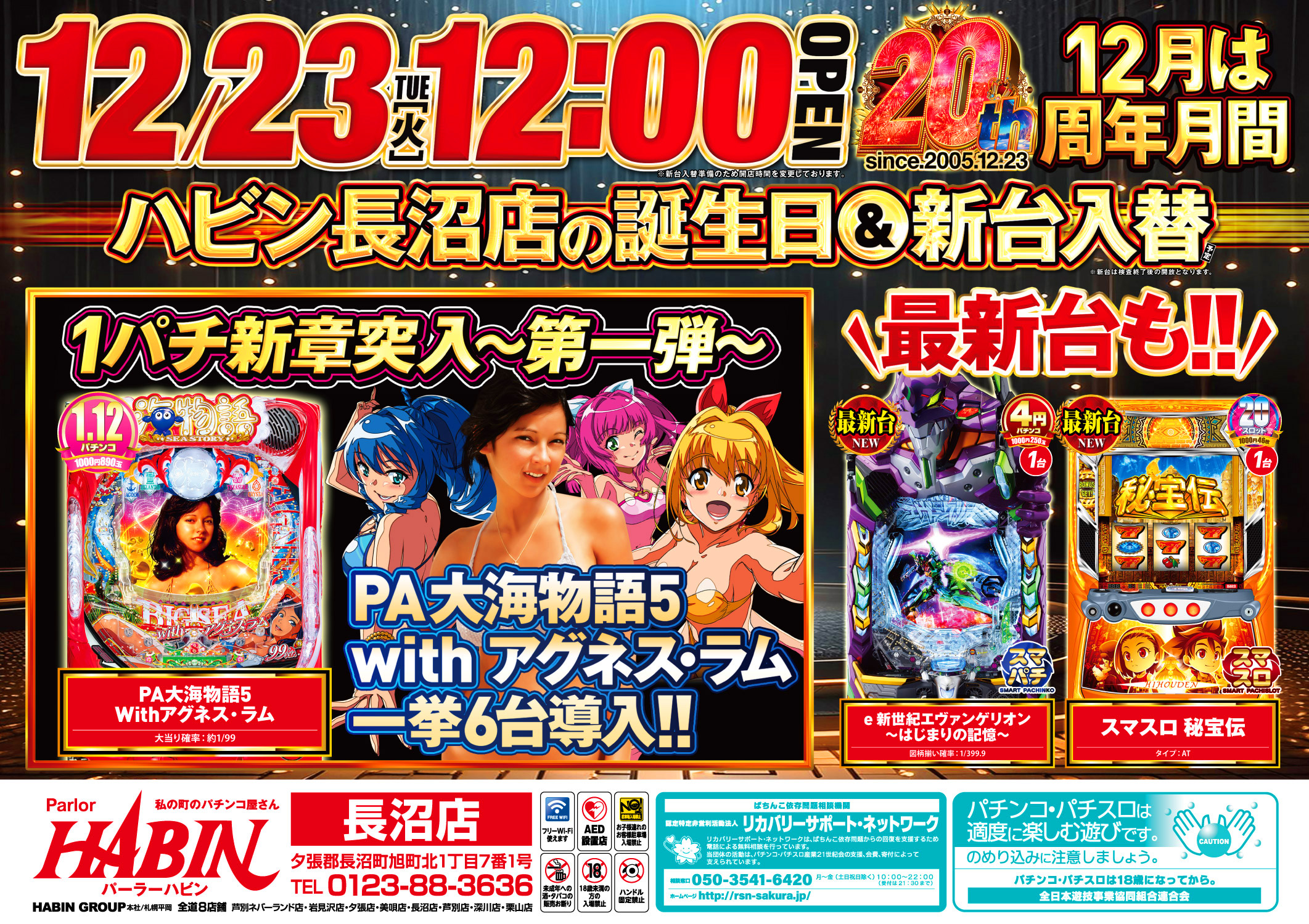 | 営業時間 | 09:00 ~ 23:00 遊技終了時間は22:45となっております。 |