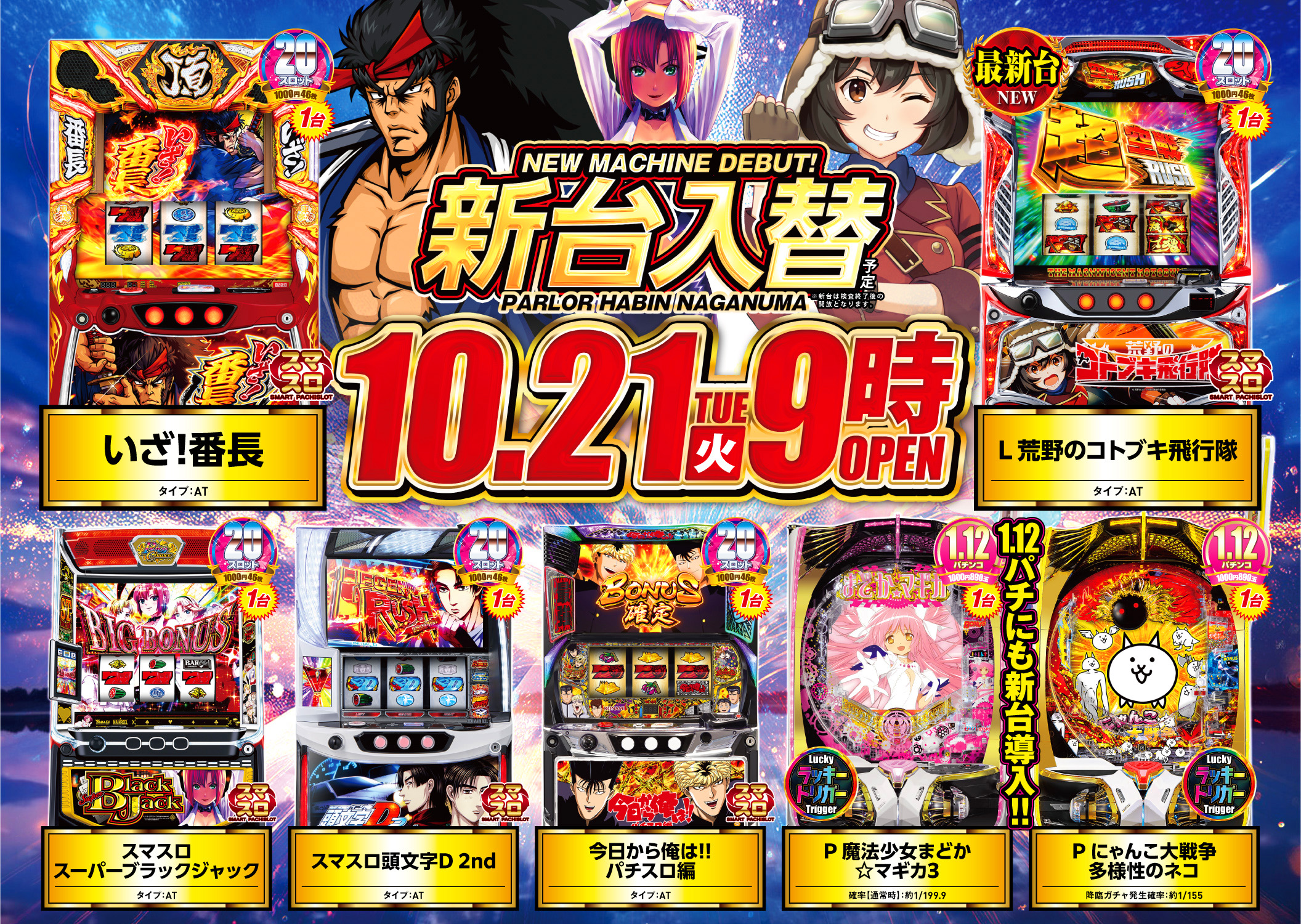 営業時間 | 09:00 ~ 23:00 遊技終了時間は22:45となっております。 |