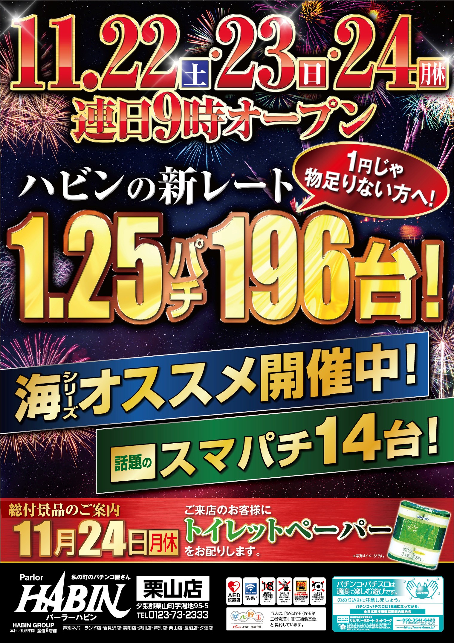 | 稼働台数 | パチンコ224台 / パチスロ112台 |